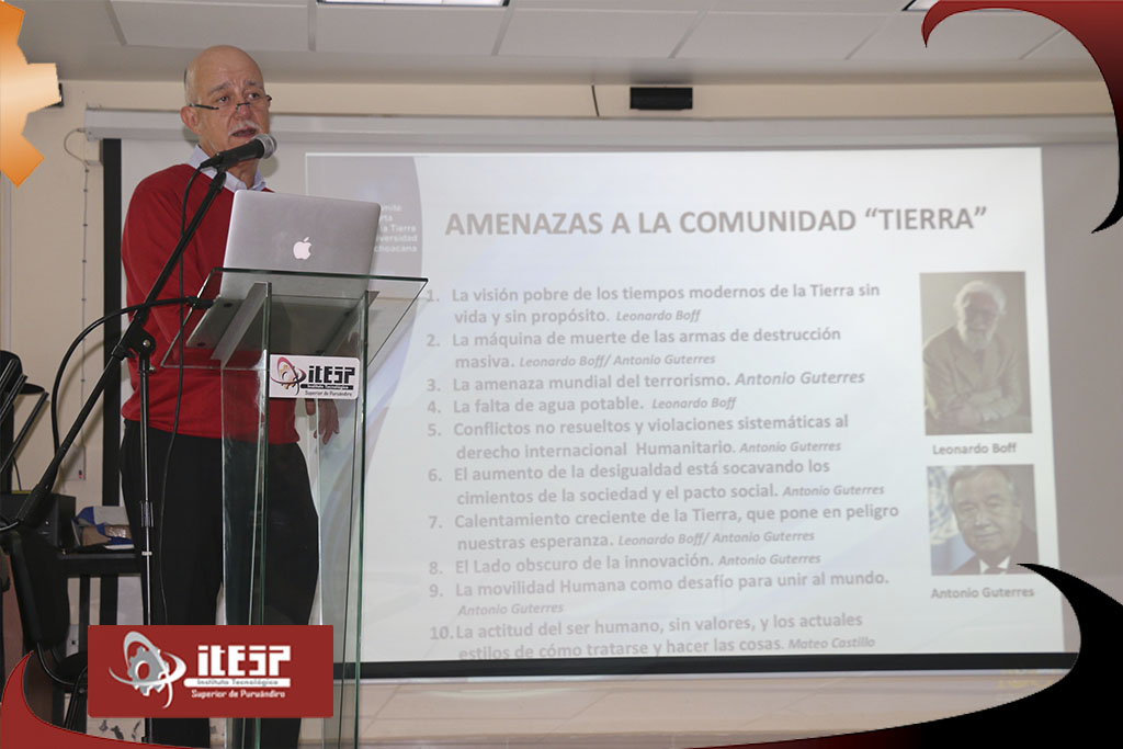Posterior a la exposición, se impartió una conferencia dirigida por el MC. Mateo Alfredo Castillo Ceja, Punto Vocal en México, de la Secretaría de la Carta de la Tierra Internacional y Centro CT de Educación para el Desarrollo Sostenible en UPAZ.