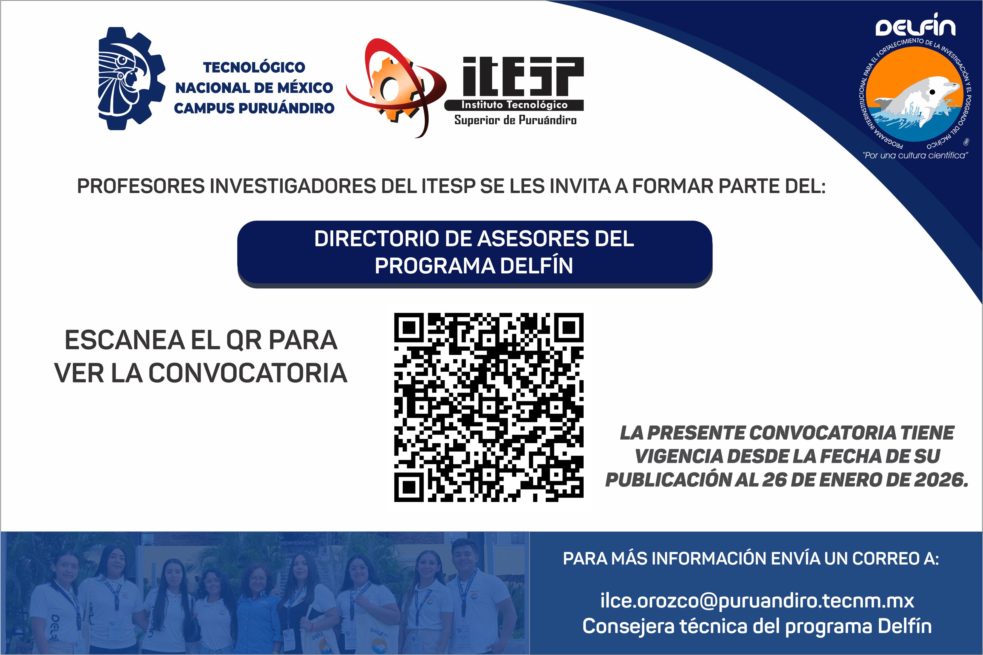 📧 Informes enviar correo a: ilce.orozco@puruandiro.tecnm.mx (Consejera técnica del programa Delfín) ...